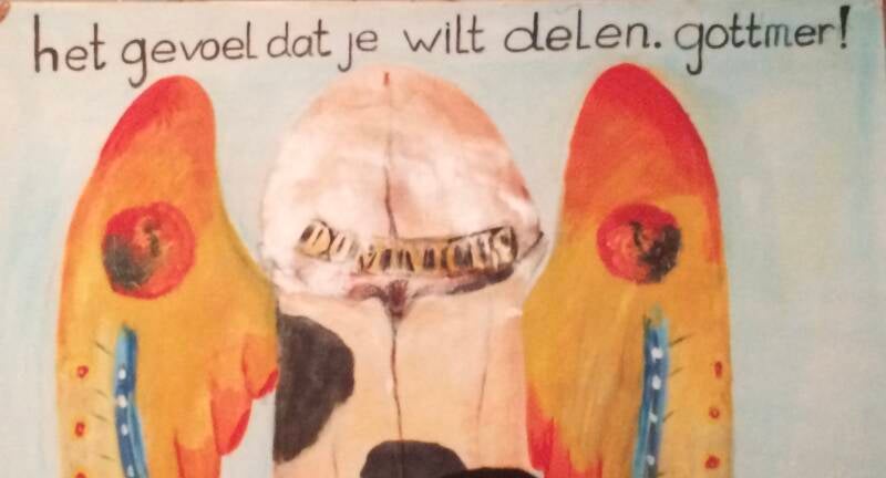 acryl op papier, 200x150cm (detail) n.a.v. mijn afscheid na 25 jaar Gottmer, de breedte van het fonds verwerkt in dit decorstuk.