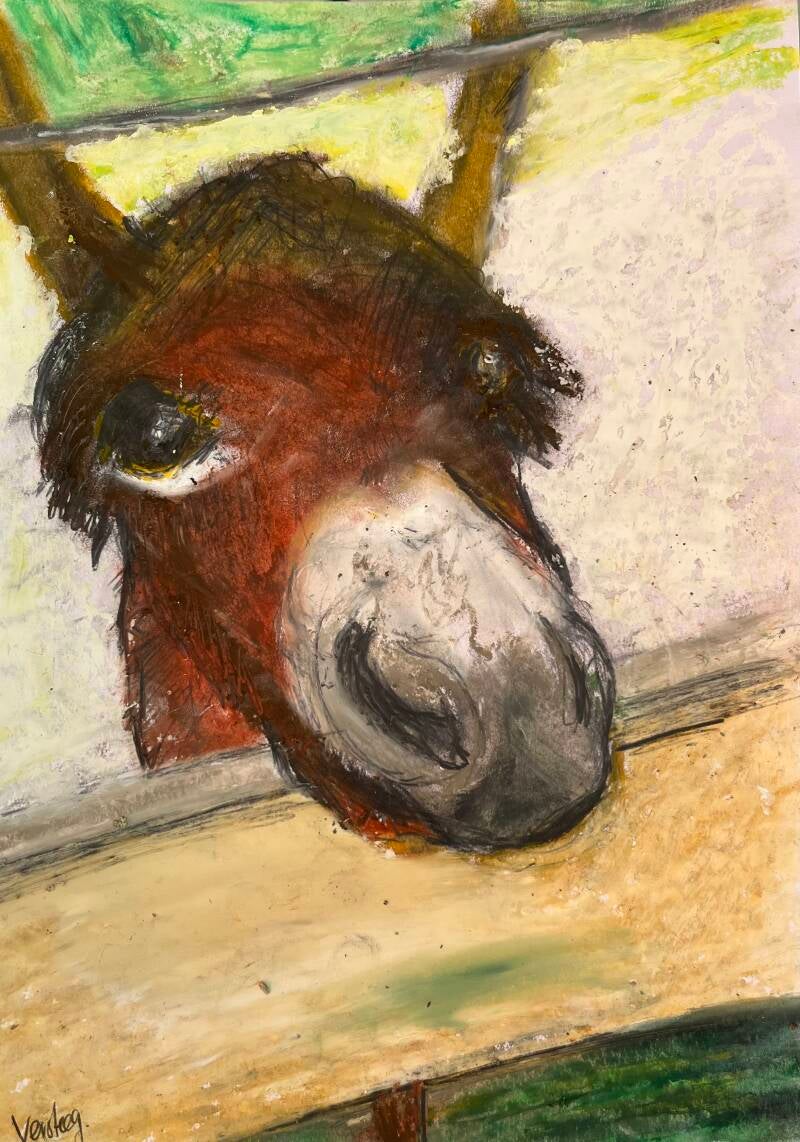 32x20cm, naar een zelfportret van Rembrand, thema licht.