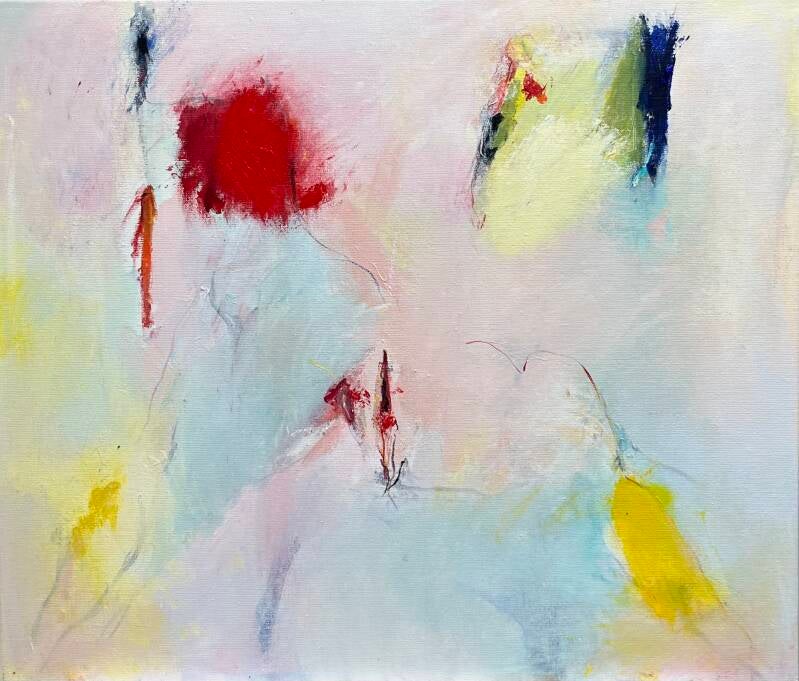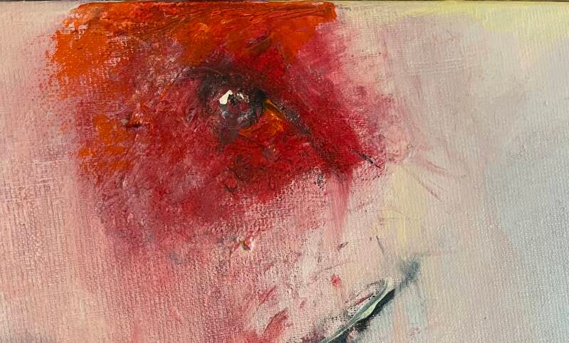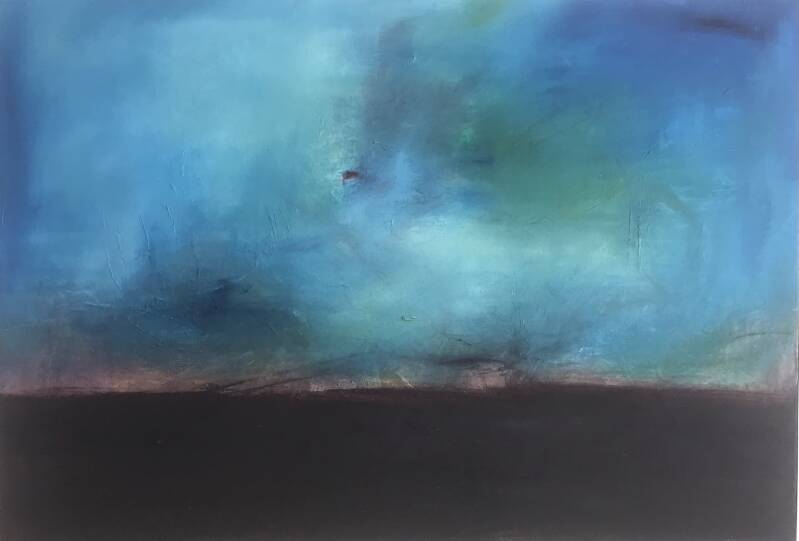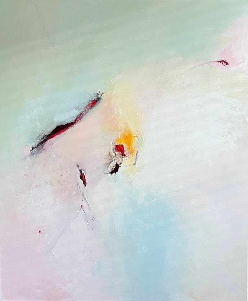 In het schilderij hiernaast zat een aanwezig fysiek oog verwerkt, het ging mij steeds meer irriteren en wat bleek dat oog werd overbodig en irritant. Het heeft mij geïnspireerd tot een verdere ontwikkeling, opnieuw 'anders' te leren kijken.